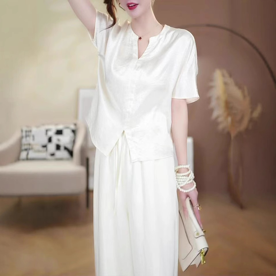 カジュアルな夏の新型半袖ワイドパンツ2025セット
