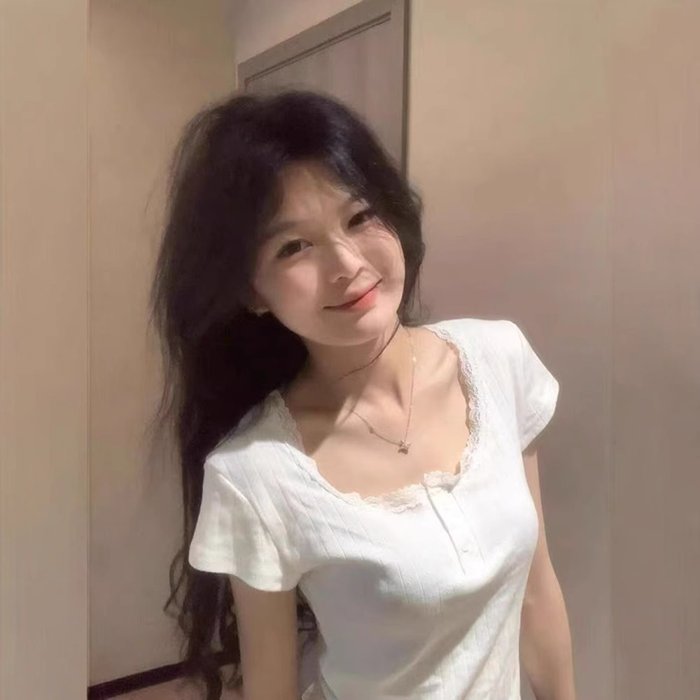 玖玖の甘いレースのレースは半袖のtシャツの女性の春の韓系の白色の修身をつなぎ合わせてやせている正肩の上着を現します。