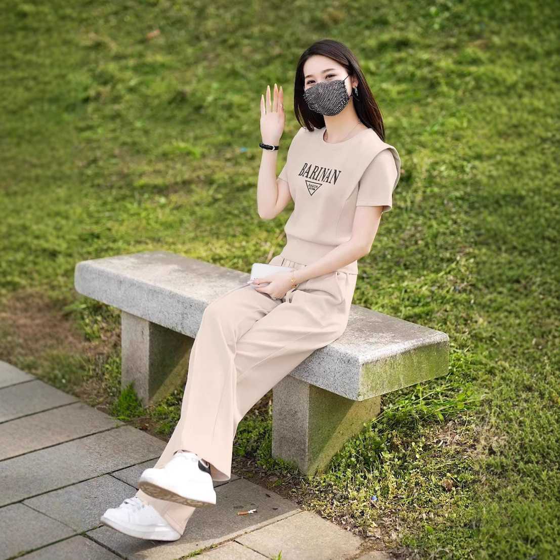 ファッションカジュアルスーツ女性2025夏の新型ゆるい減齢洋気スポーツウェア半袖ワイドパンツ2点セット