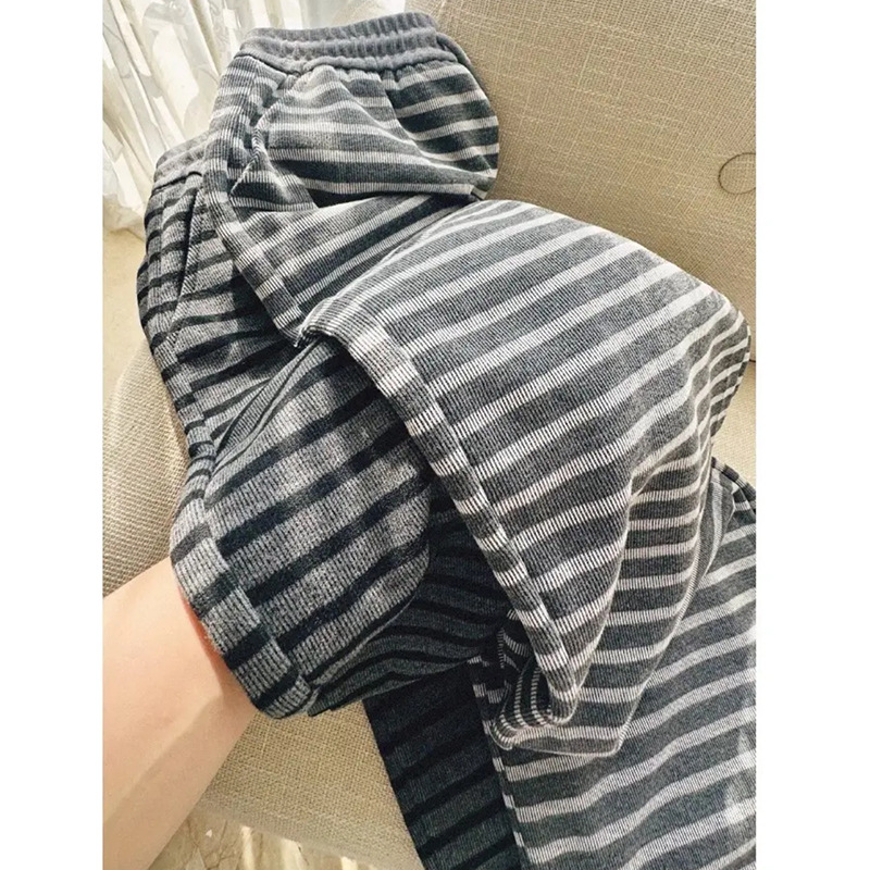 【浙江の仕事】今年は色のメリヤスのストライプのワイドパンツが流行しています。