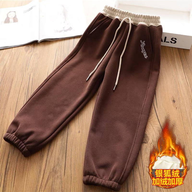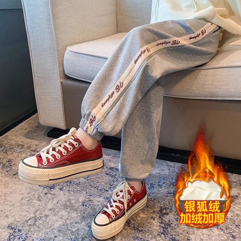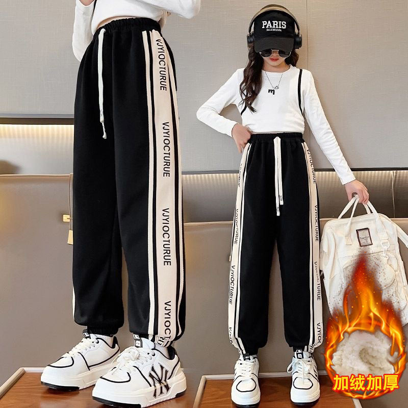 女の子のズボン秋冬のタイプ2024の新しい洋気の大きい子供のスポーツのズボンの冬のレジャーの子供の冬の服のベルベットの衛のズボン
