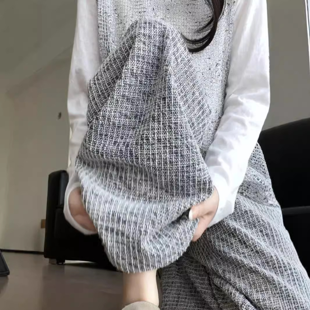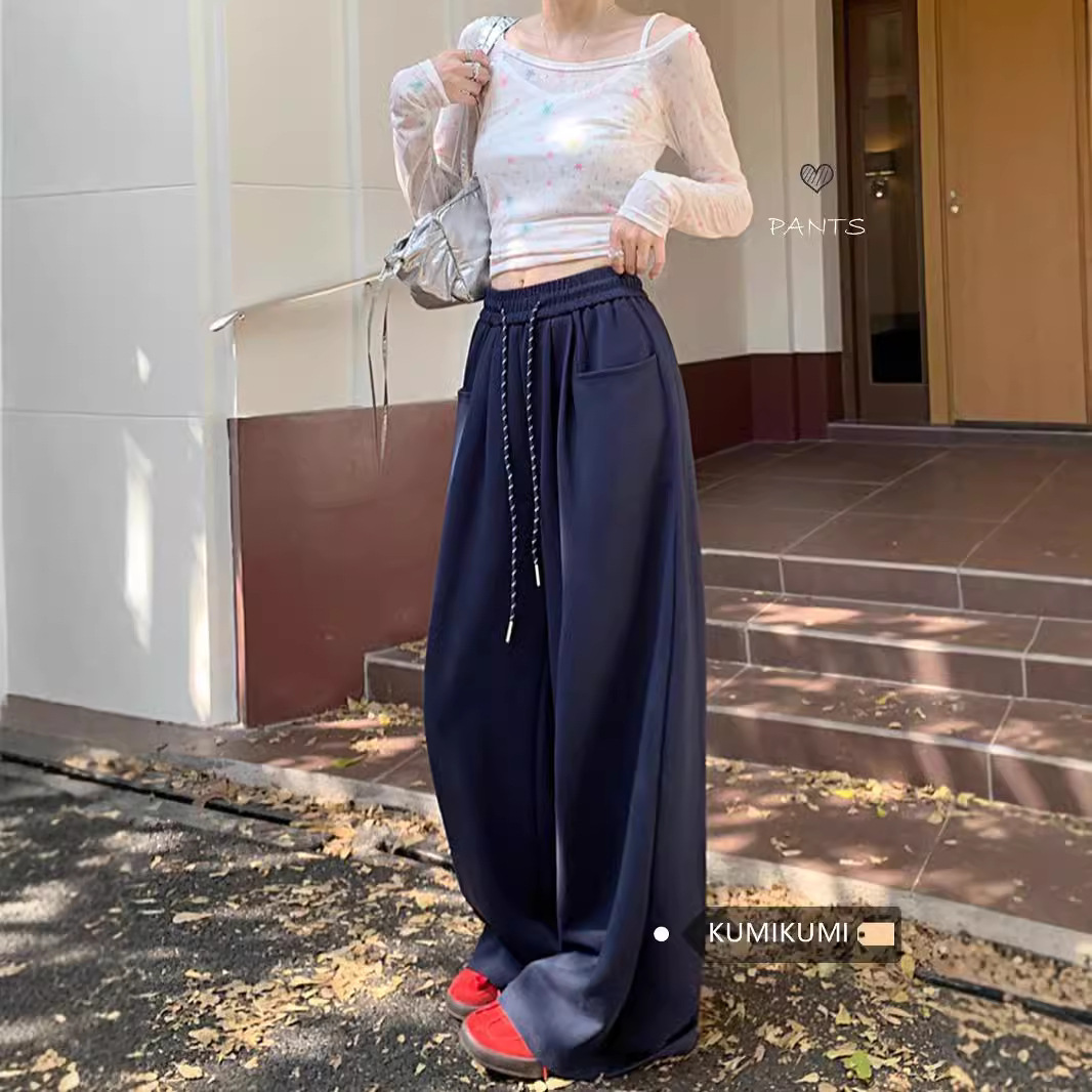 早秋の雰囲気感のある灰色の格子のストレートカジュアルなズボンの女性2024の新型のゆったりしていて、だらだらしています。