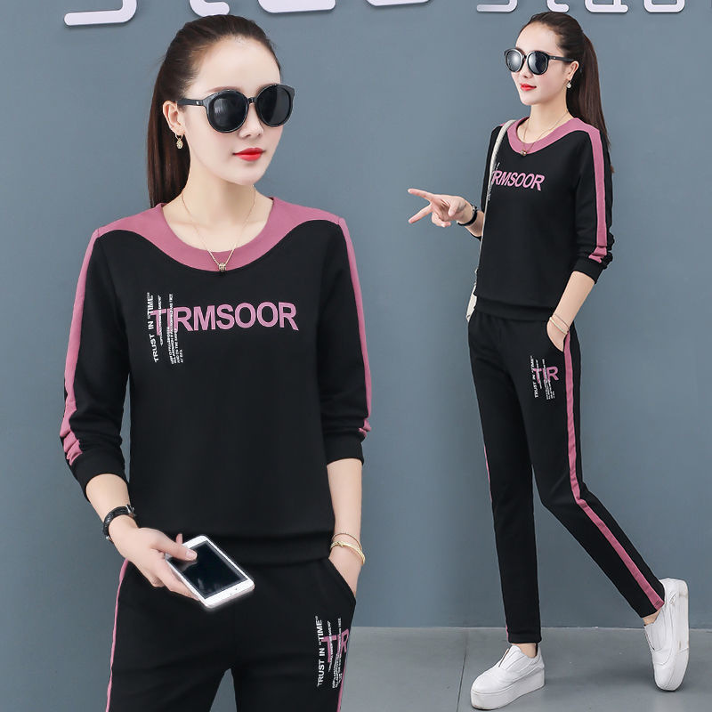 775 # スポーツスーツ女子春秋2024年新韓国版ゆるい長袖大サイズランニングカジュアル服2点セット