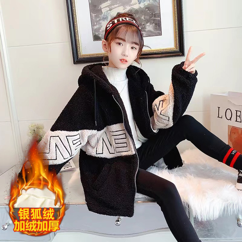 510グラムの奥の粒の絨毯の複合の銀狐の絨毯、女の子の上着の秋冬の2024の新型の中で大きい子供は上着を厚くします。