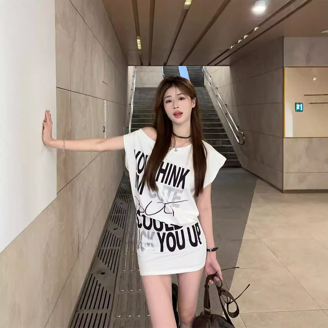 MRはすでにアメリカのギャルのアルファベットのプリントの肩のワンピースの女性の夏のデザイン感を出荷しました。