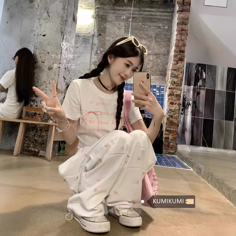 女の子の夏服セット2024新型女の子ネット紅洋気流行半袖子供服夏パンツ2点セット