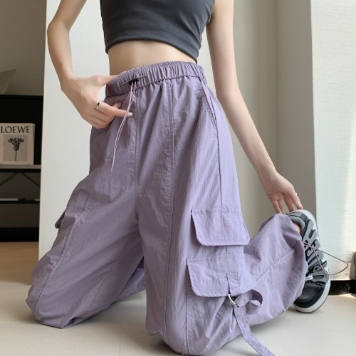 【速乾ナイロン】速乾工装ズボン女性夏高腰ゆるいカジュアル夏ストレート痩せ紫運動
