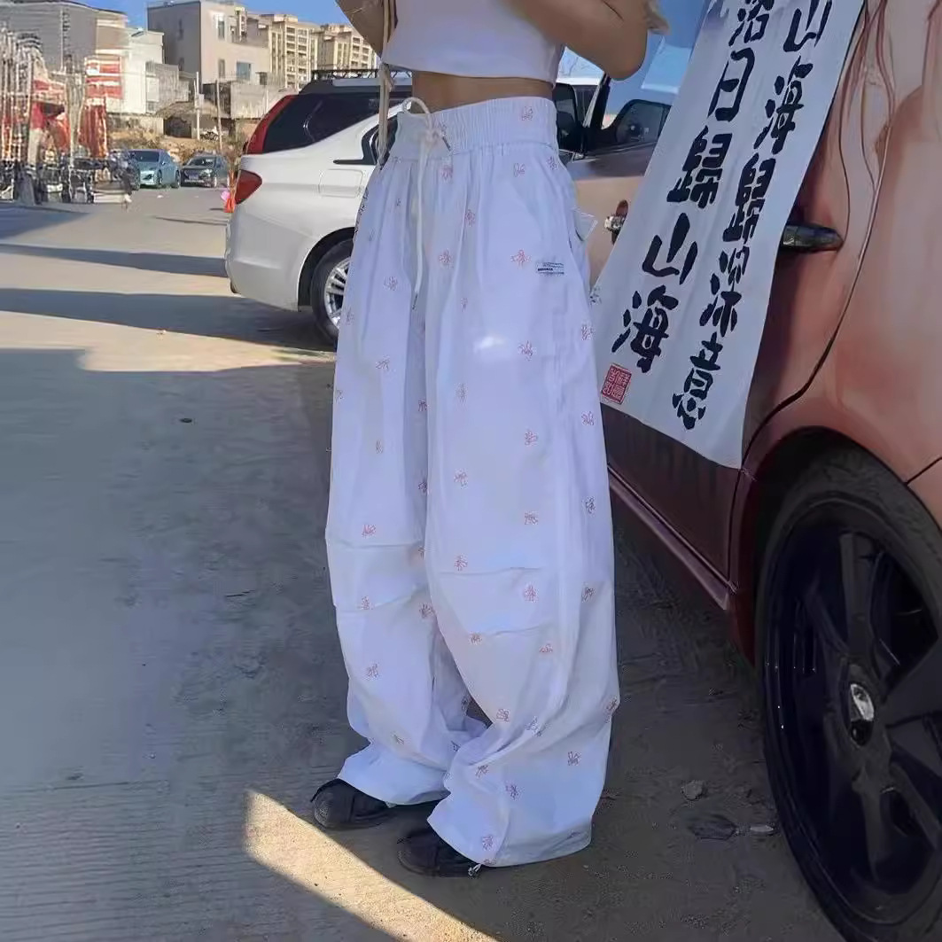 アメリカ式パラシュート工装ズボン女2024夏の新型香港風ゆるいひもの広い足の機能の衛ズボン女