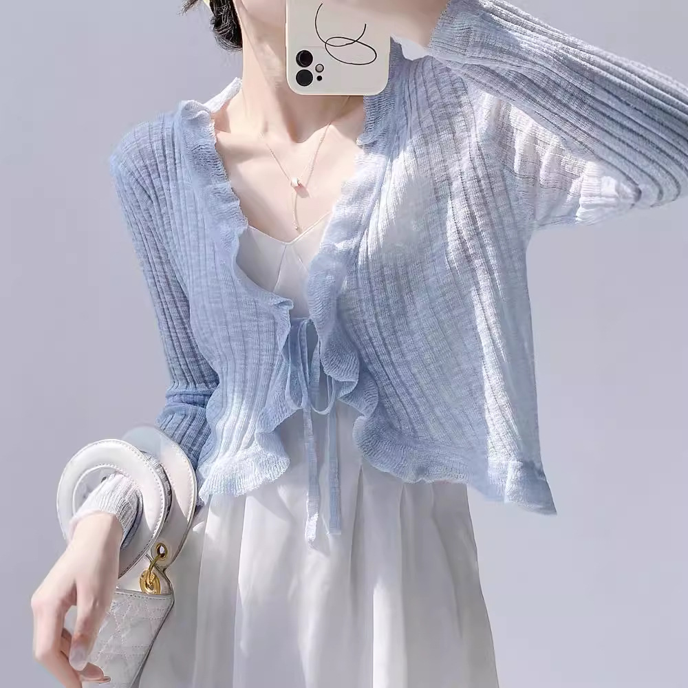 5365 # 日焼け止めニットカーディガン女性の薄いタイプのエアコンブラウス夏のストールの氷の糸の小さいカンカンの肩の仙気のコート