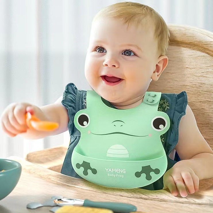 食事をしている赤ちゃんの防水シリコンゴムの唾液ポケットの立体的な無料の子供の食事ポケットのシリコンゴム