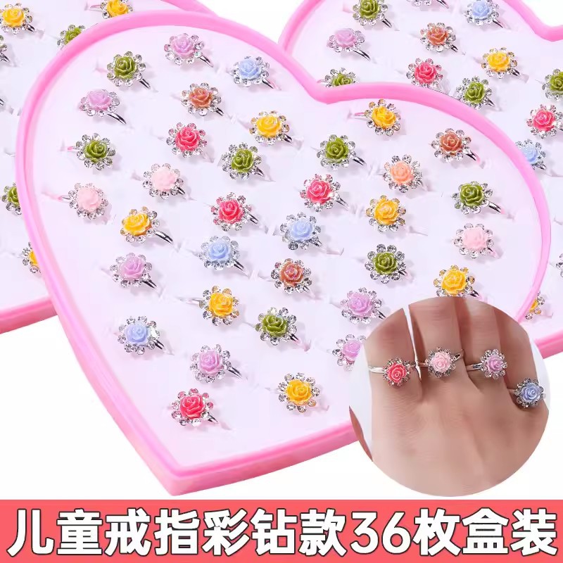 新しい色の子供の指輪のピンクの調節可能な樹脂の指輪の手は子供のプレゼントの指輪の箱を飾ります。