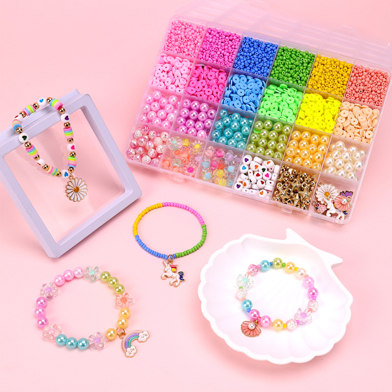24格アマゾン益智玩具手作りdiyビーズブレスレットネックレスアクセサリー部品子供ビーズ