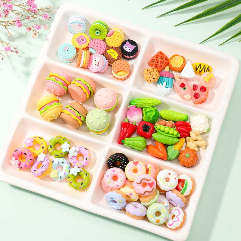 新しいdiy樹脂の部品の卸売りクリームのアクセサリーの部品の手作りのヘアピンの材料の漫画のミニチュアは食べ物を縮めて遊びます。