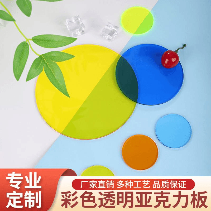 カラフルな半透明アクリル板赤、緑、青、オレンジプレキシガラスパネルディスク片面および両面つや消し紅茶切断