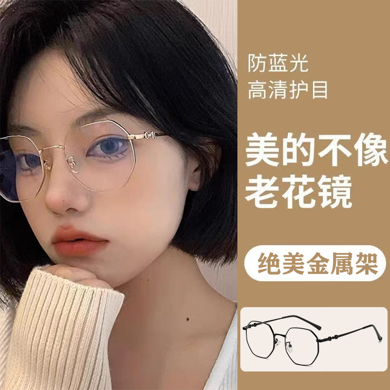 新しいポリゴンラージフレーム抗青色光老眼鏡女性用高精細中高年ファッショナブルな若々しい老眼鏡
