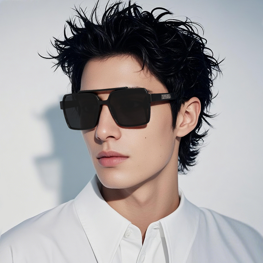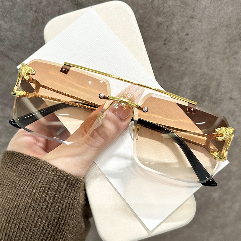 人気のダブルビームファッショナブルなヒョウヘッドカットエッジスクエアフレームレスメガネメンズドライビング抗UV HDサングラス