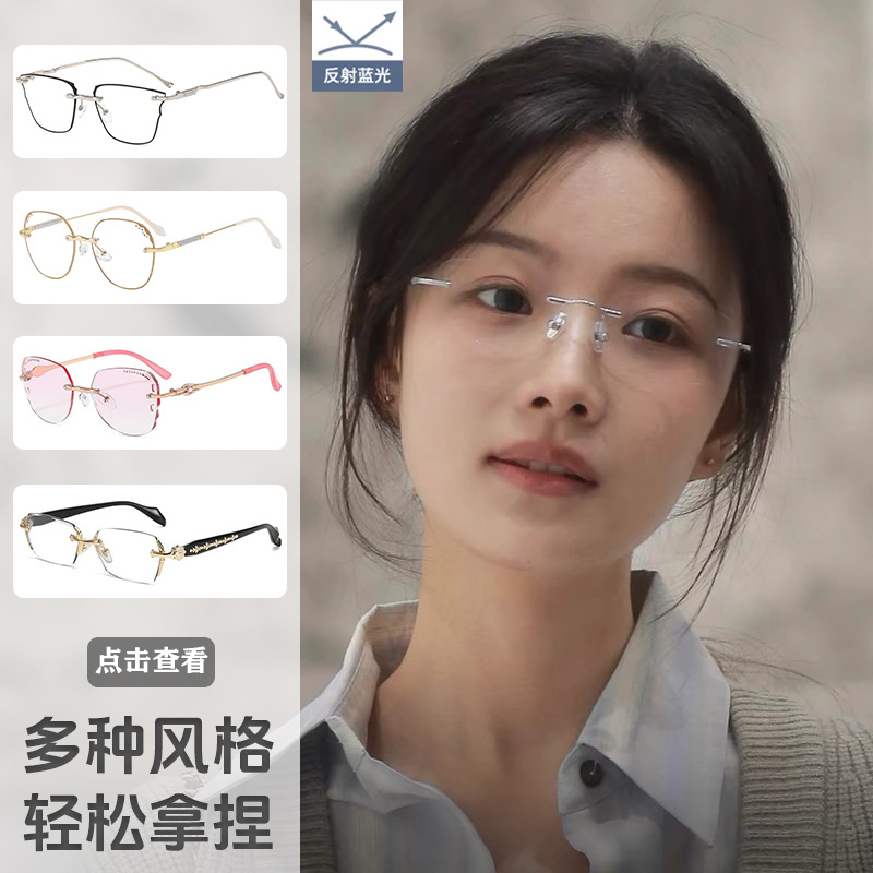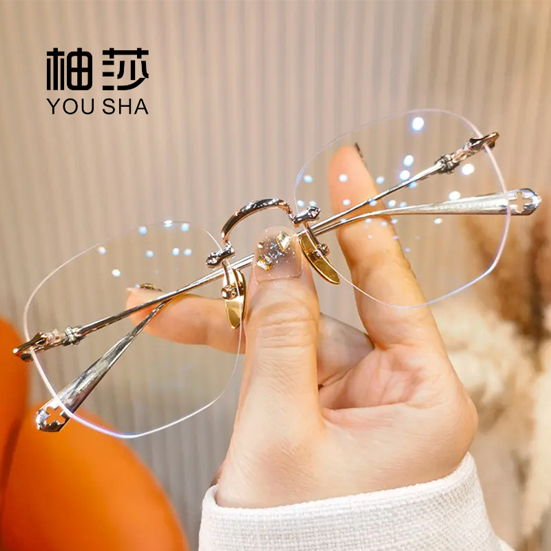 高精細抗ブルーライト無地超軽量老眼鏡女性用ファインフラッシュダイヤモンドフレームレス度付き完成老眼鏡