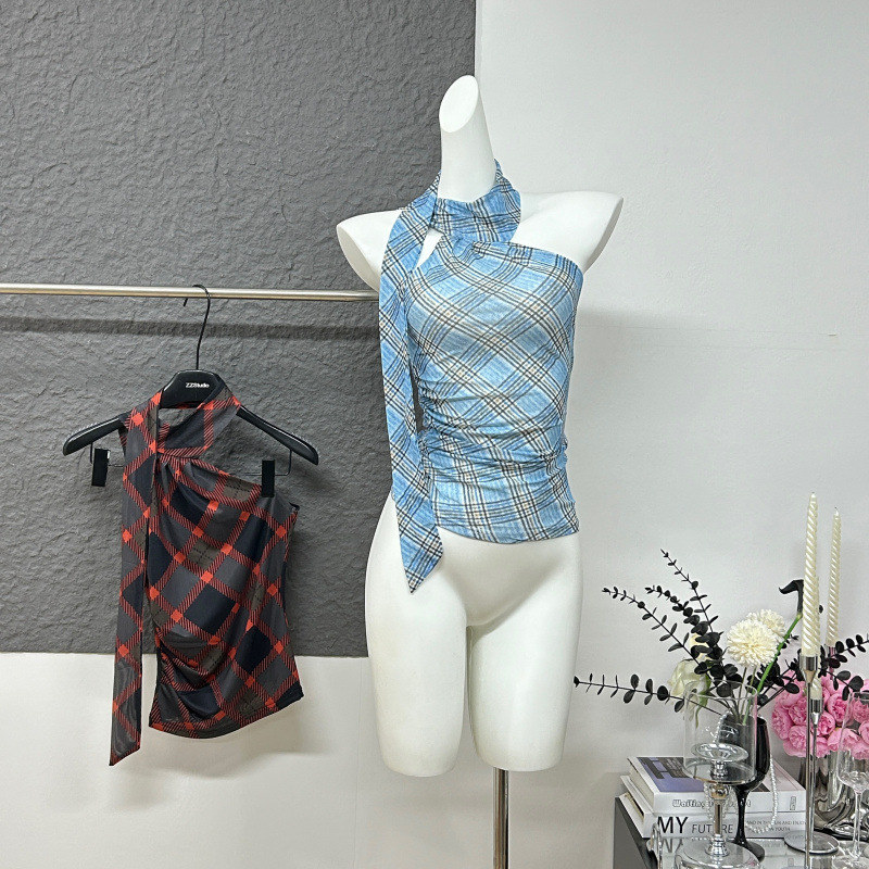 12.23新品wooha吾哈2025春のギャルは首の小さい透き通った格子のベストw 512075009を掛けます。