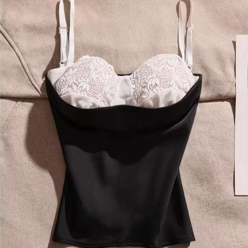 レースのサテンのサスペンダーのベストの女性の1字の肩のセクシーさはやせている内に上着を掛けます。