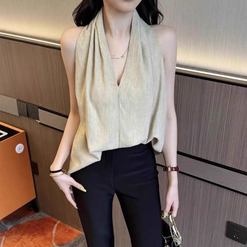首のベストを掛けます。女性の夏のデザイン感が小さいです。