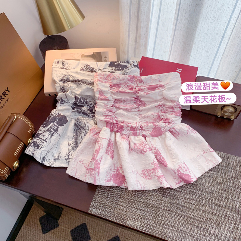 実拍 ~ 実価の甘辛い風の砕花のしわは胸のベストの女性のフランス式の甘い上着の短いスカートの小さいシャツを塗ります。