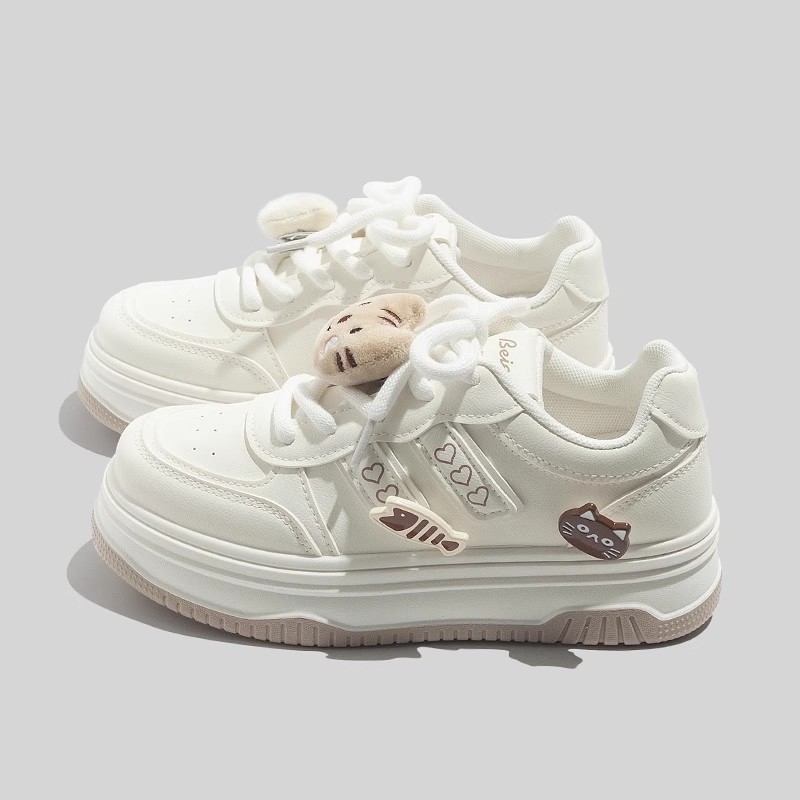 女の子用厚底スニーカー、ハート柄シューズ、2024春秋新作、滑り止め、紐付きスポーツシューズ、中高生向け、おしゃれ、子供向け