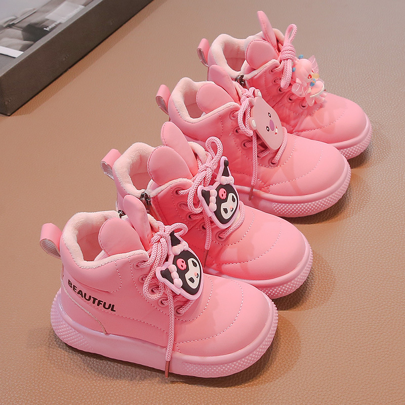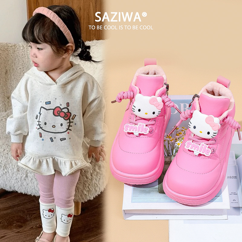 女の子kt猫綿靴2024冬の新しい子供のストラップ漫画ショートブーツ保温中の子供のファッションファッション