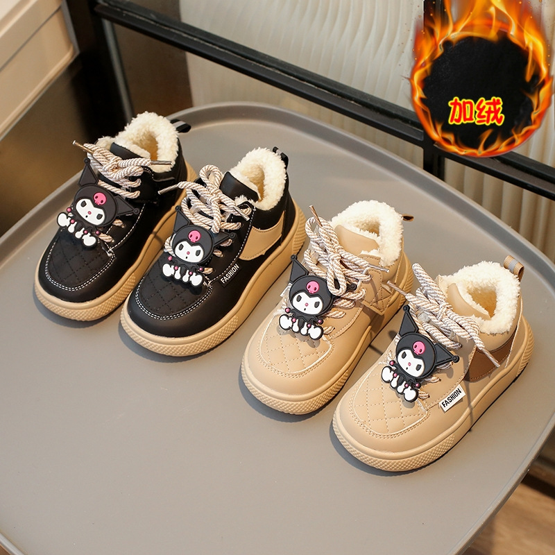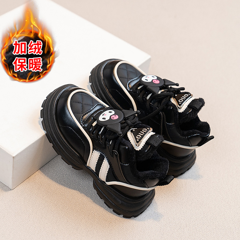 女の子の綿スニーカーベルクロレザー暖かい 2024 秋と冬の新しい滑り止め子供レザーランニングシューズトレンディ