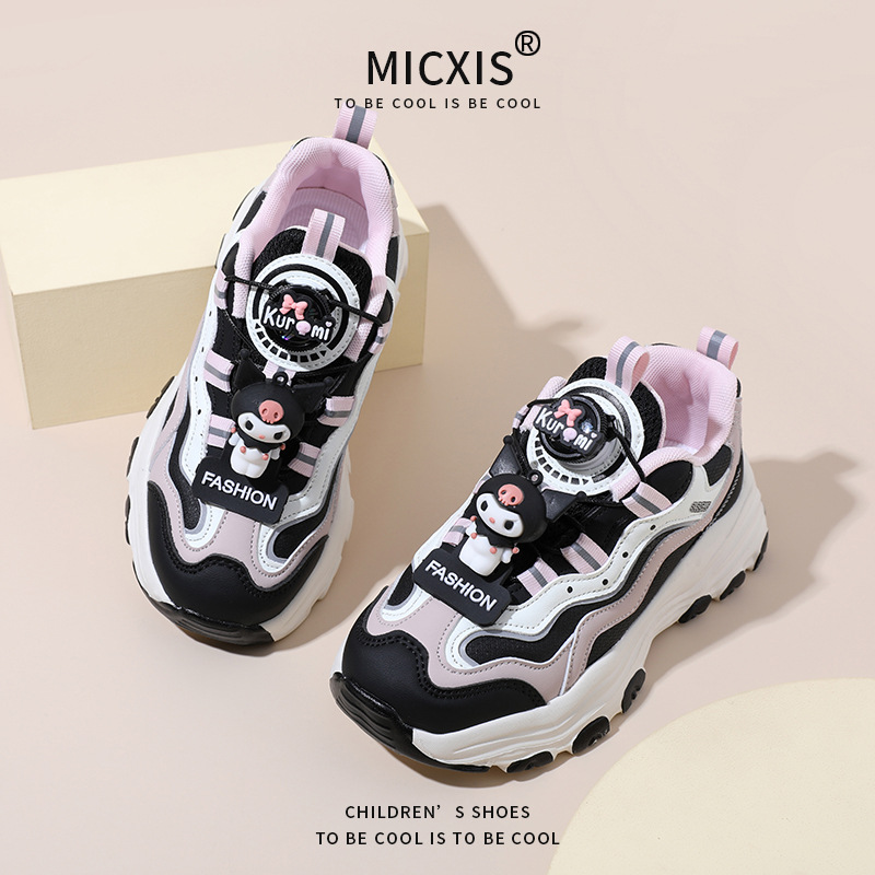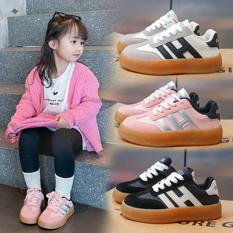 女の子の双網クロミスポーツシューズ2024年秋冬の新型皮面ランニングシューズに合わせて男児のカジュアルシューズが流行した