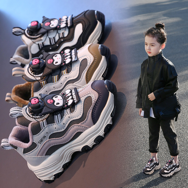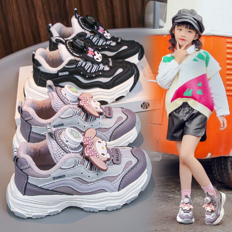 子供用綿入りクロミスポーツシューズ保温2024女の子ボタン靴男の子ランニング靴滑り止めファッションブーム
