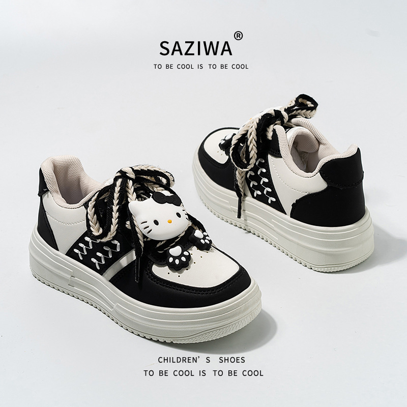 女の子の子供靴2023春秋の新型の柔らかい底の子供の運動靴は中の大きい子供の白い靴の女の子のレジャーの板の靴に乗ります。