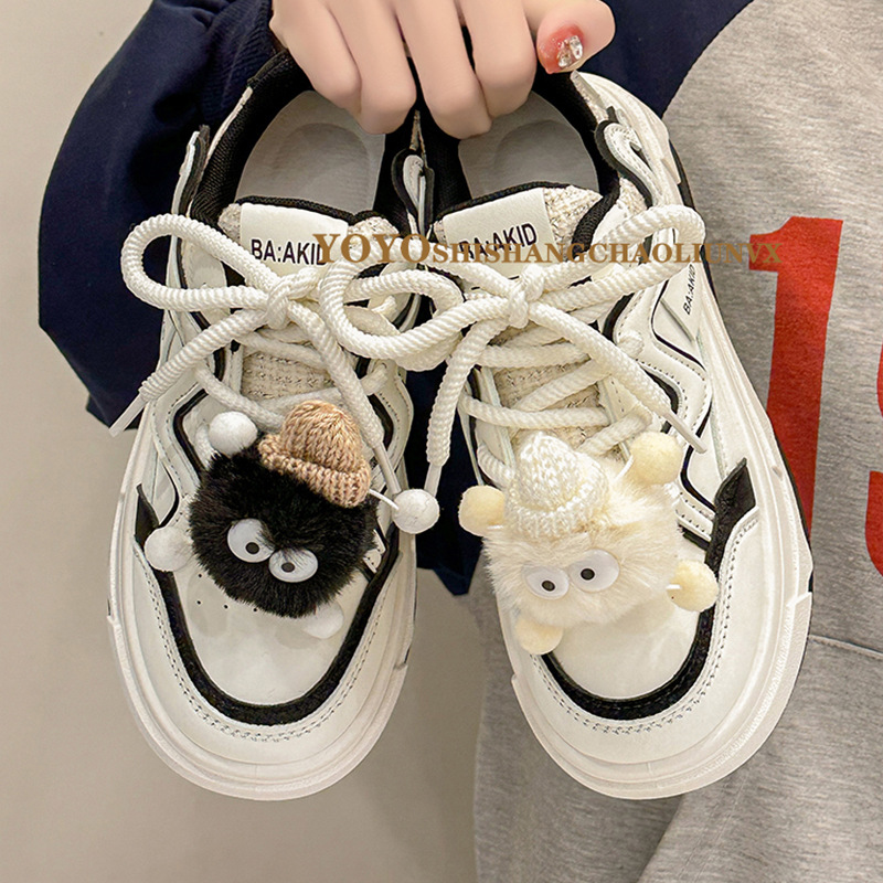 女の子のkt猫の板の靴の2024秋冬の新型の厚い底の石炭のボールの漫画のカジュアルな靴の滑り止めの百合の潮の中で大通の潮