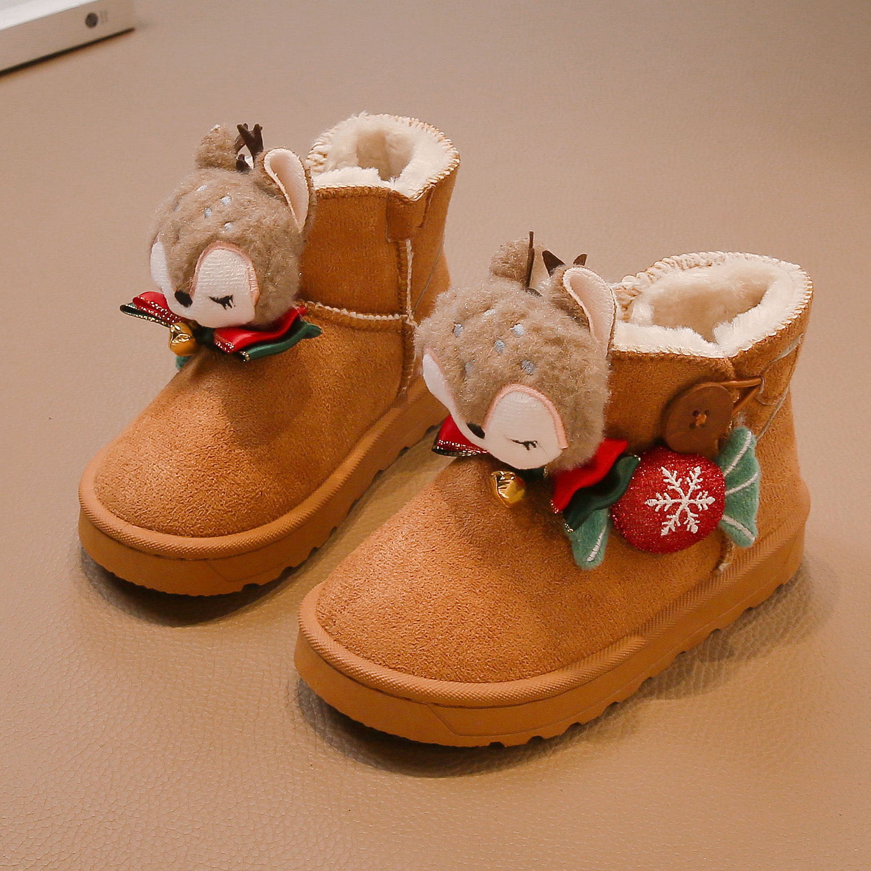 女の子のベルベットスノーブーツクリスマス暖かい綿の靴 2024 冬の新しい滑り止め厚底ショートブーツファッショナブル