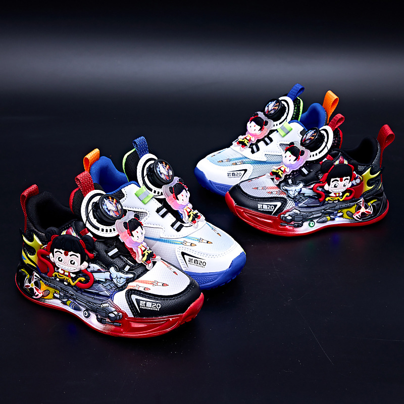 男の子と子供の春と秋のボタン靴の運動靴の柔らかい底のお父さんの靴の中で大きい子供のランニングシューズの子供の靴の滑り止めの2024の百合のファッション
