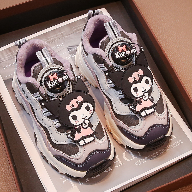 女の子のクロミガコットンスポーツシューズ子供のボタン靴保温ランニングシューズ2024冬の新型滑り止め