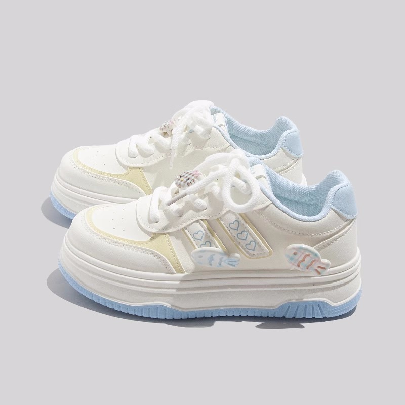 子供靴、レディース白靴、シングルメッシュ通気性レースアップ厚底春夏新作2025子供靴、多用途、トレンディ、滑り止め