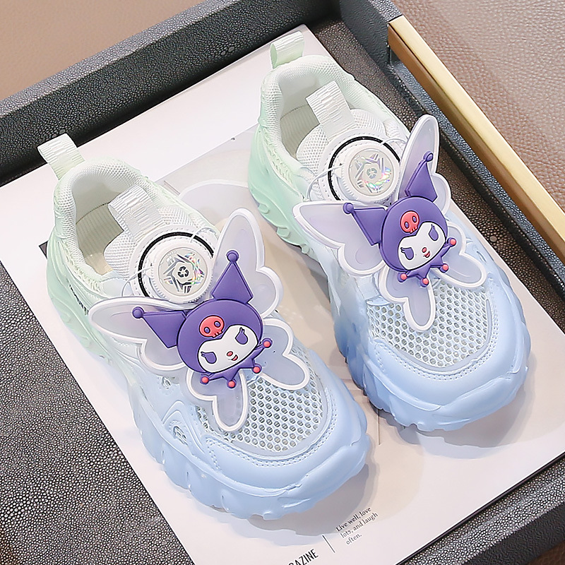 クロミ女の子靴、スポーツシューズ、メッシュ通気性ボタンシューズ、中型および大型子供用グラデーションカラーランニングシューズ、多用途学生靴
