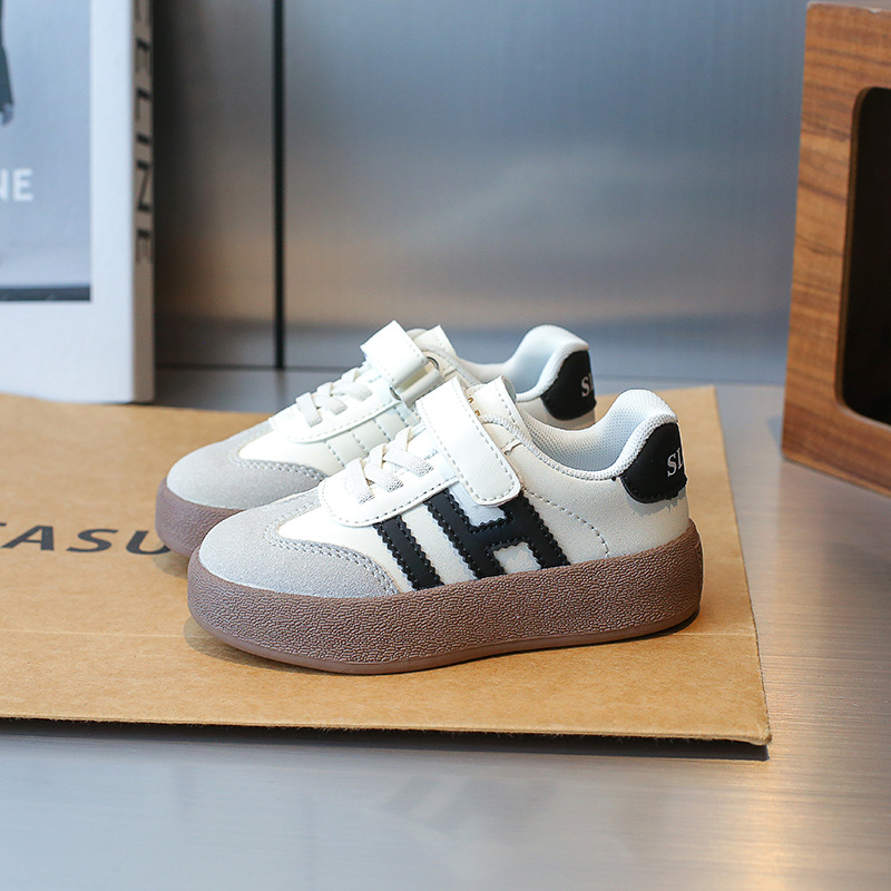 子供靴、レディースレザーパネルシューズ、カジュアルシューズ、ローカットレースアップスニーカー、2025春秋新作、中型、大型子供用万能靴