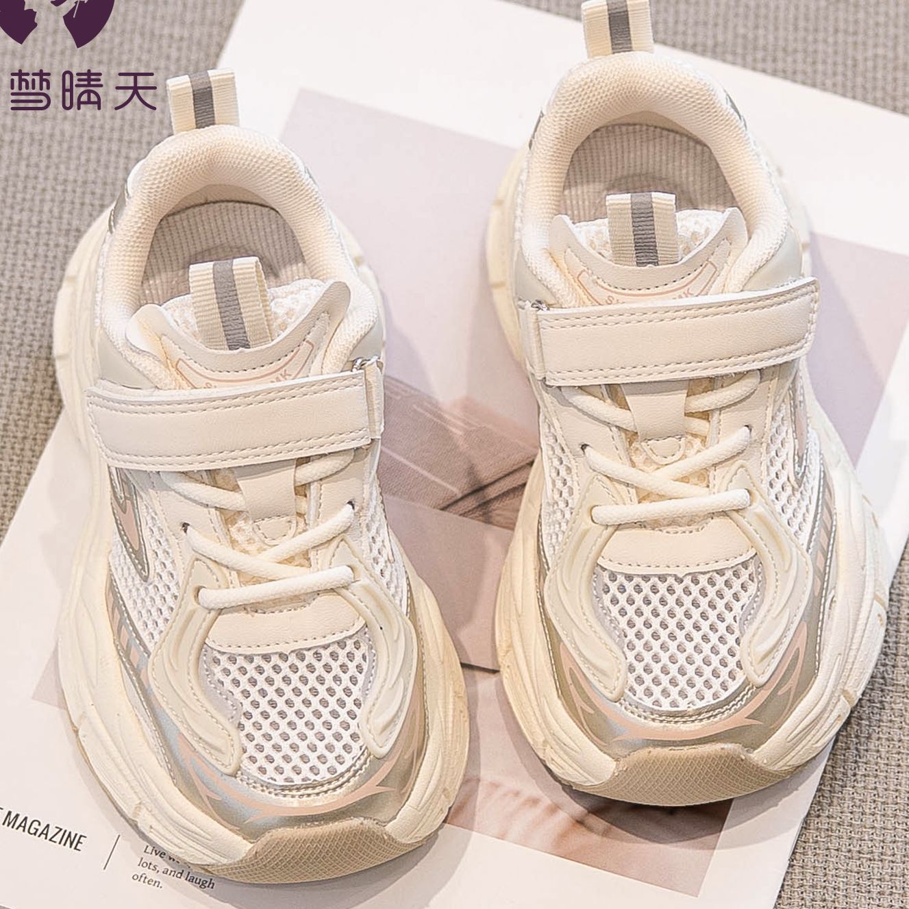 子供用メッシュスニーカーベルクロ2025春と秋の新しい滑り止めカジュアルシューズ女の子ランニングシューズ多用途でトレンディです
