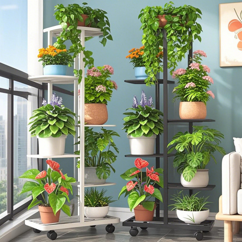 フラワースタンドはしご型多層屋内外可動多肉植物鉢植えスタンドローラー付きバルコニーフラワースタンド