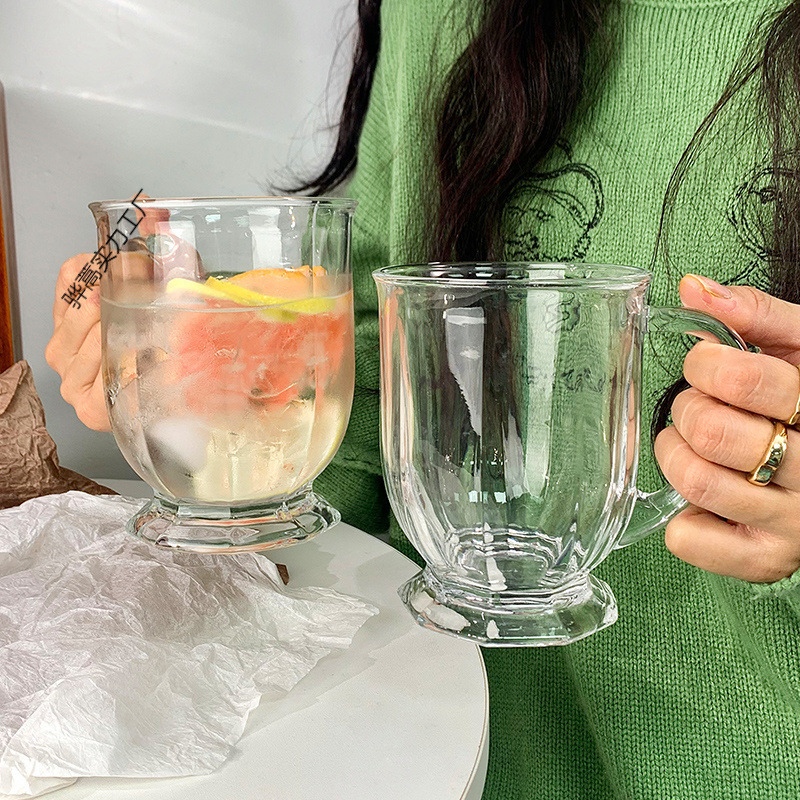 グルグルビッグカップ‖韓国風大容量レトロガラスカップハンドル付きジュースミルクティーミルクカップ