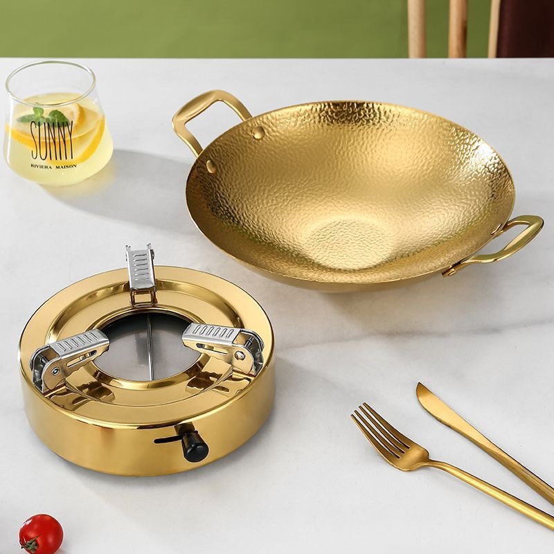 ステンレス鋼ドライポット商業ドライポットボイラーホテルレストランハンマーパターンゴールデンポットアルコールストーブドライポットポットドロップシッピング