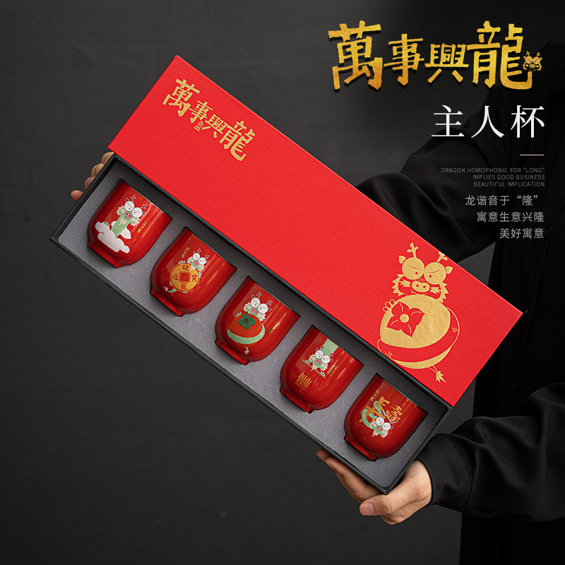 万事興龍おめでたい陶磁器個人杯主人杯湯飲みセット家庭用会社企業お土産