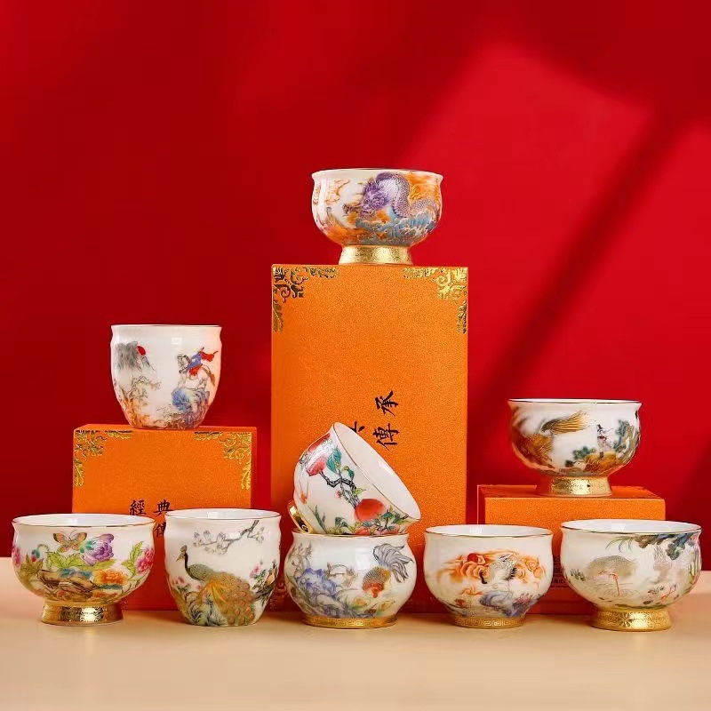 厳選羊脂玉レトロエナメルカップ茶杯主人杯一杯神雕侠女敬茶工夫品茗杯