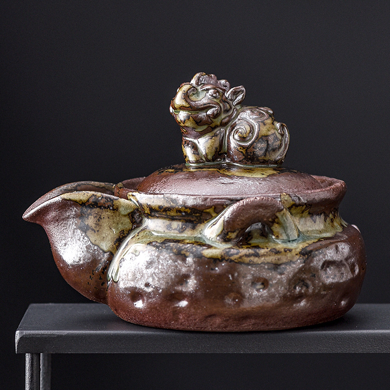 柴烧手工貔貅宝瓶壶茶壶陶瓷大号复古泡茶壶功夫茶具手抓壶分茶器