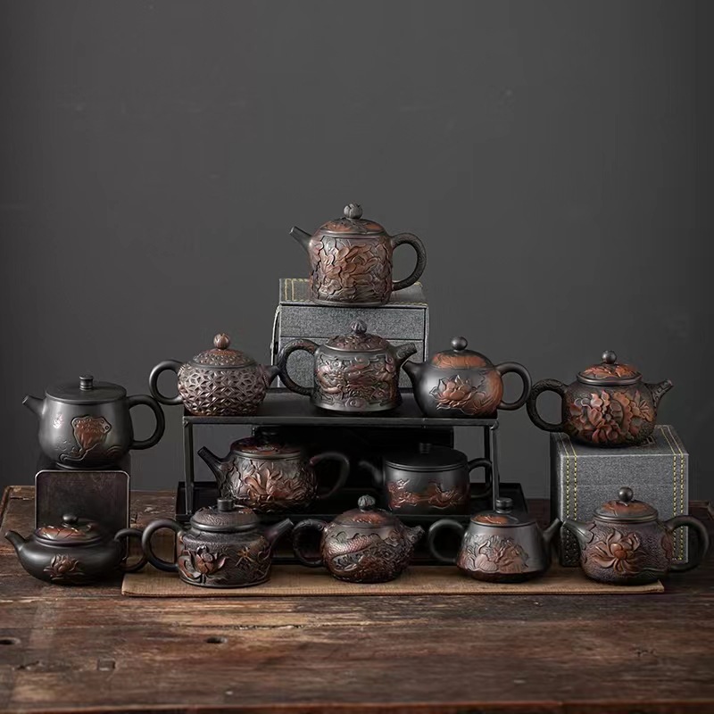 紫陶复古手工堆莲花茶杯家用主人杯单杯建盏杯功夫茶具品茗杯茶碗