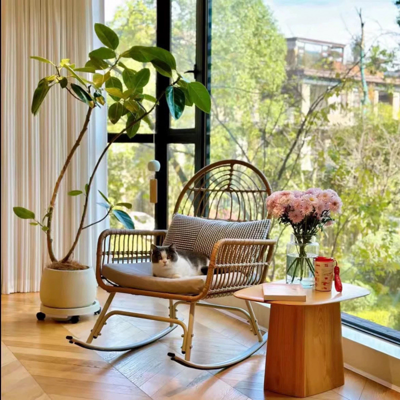 ロッキングチェアベランダカジュアル籐編み籐椅子家庭用怠け者一人リビングルーム逍遥アウトドア大人庭リクライニングチェアロッキング