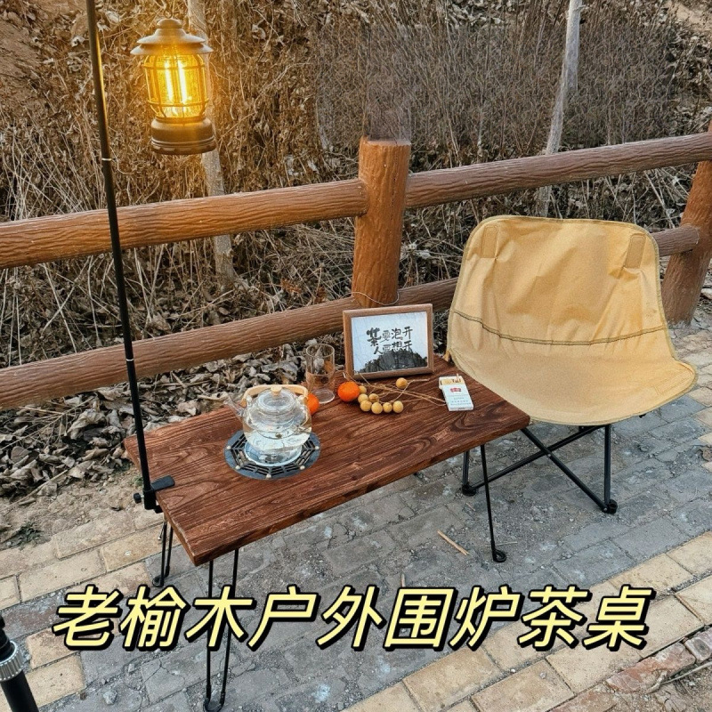 古いニレ材のティーテーブル屋外正方形折りたたみキャンプポータブル中庭バルコニー釣り折りたたみ無垢材テーブル