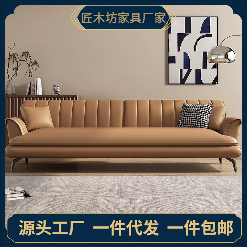 イタリアのミニマリストレザーソファリビングルーム 2024 新しいオフィスレトロブラウンモダンシンプルレザーソファストレート
