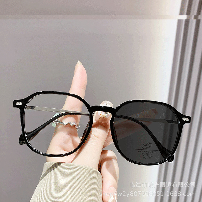 感光変色平光鏡男ブルーレイ変色防止メガネファッション楕円形素顔ネット赤ファッションファッション女性